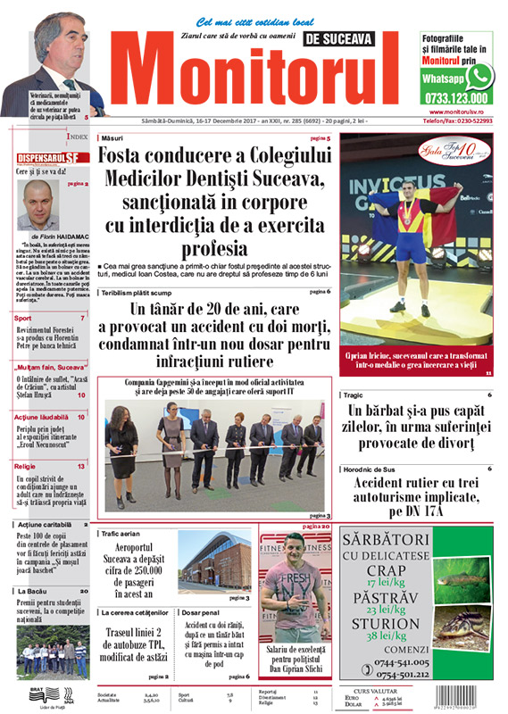 | Fosta conducere a Colegiului Medicilor Dentişti Suceava, sancţionată in corpore cu interdicţia de a exercita profesia |