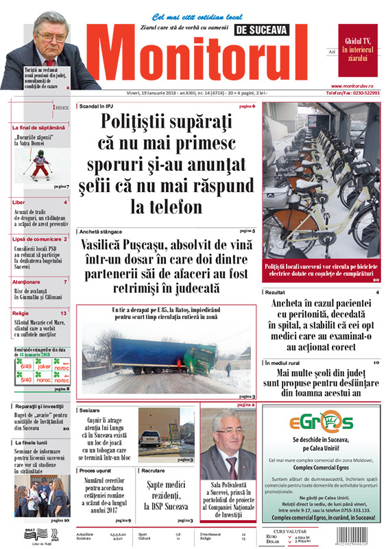 Poliţiştii locali suceveni vor circula pe biciclete electrice dotate cu coşuleţe de cumpărăturiBalul Bobocilor de la Colegiul Naţional ”Ştefan cel Mare”