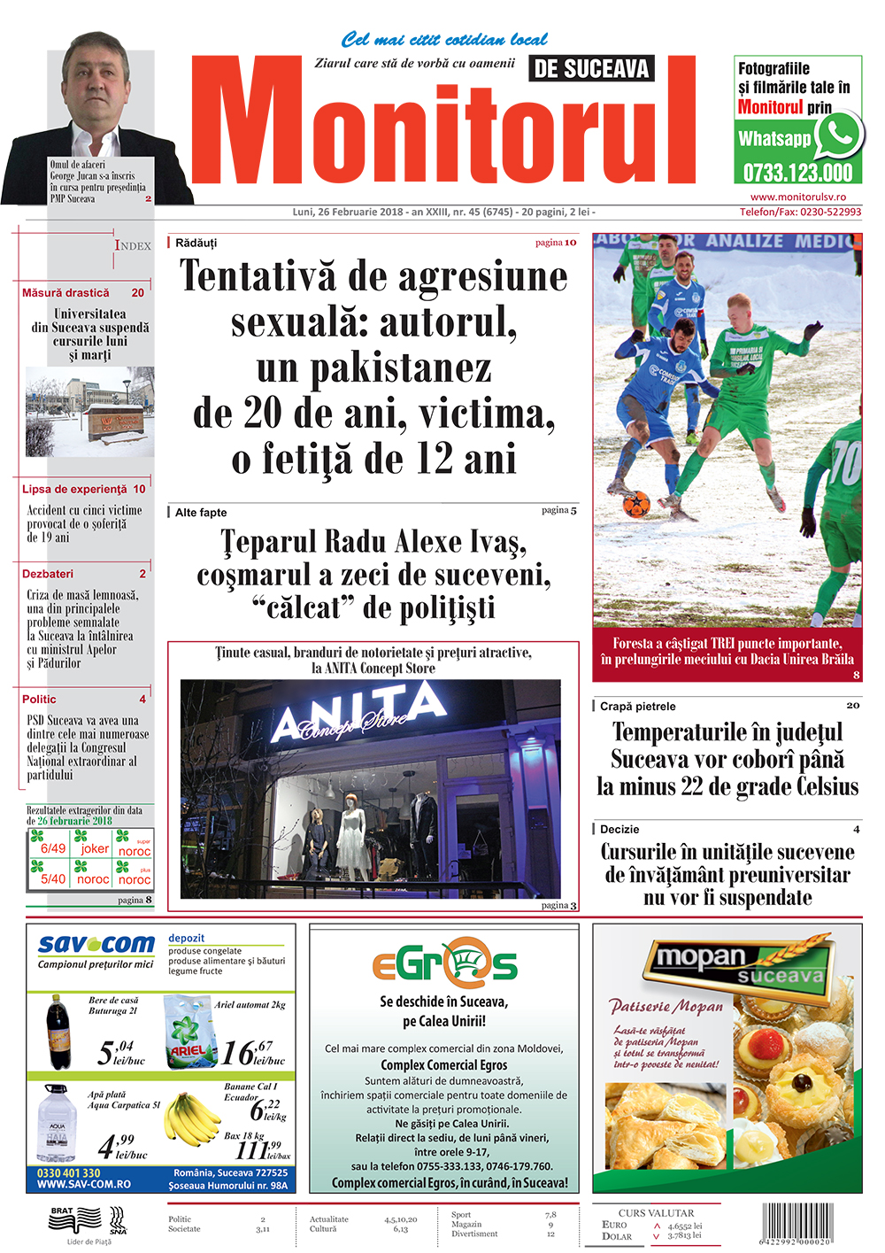Criza de masă lemnoasă, una din principalele probleme semnalate la Suceava la întâlnirea cu ministrul Apelor şi PădurilorBalul Bobocilor de la Colegiul Naţional ”Ştefan cel Mare”