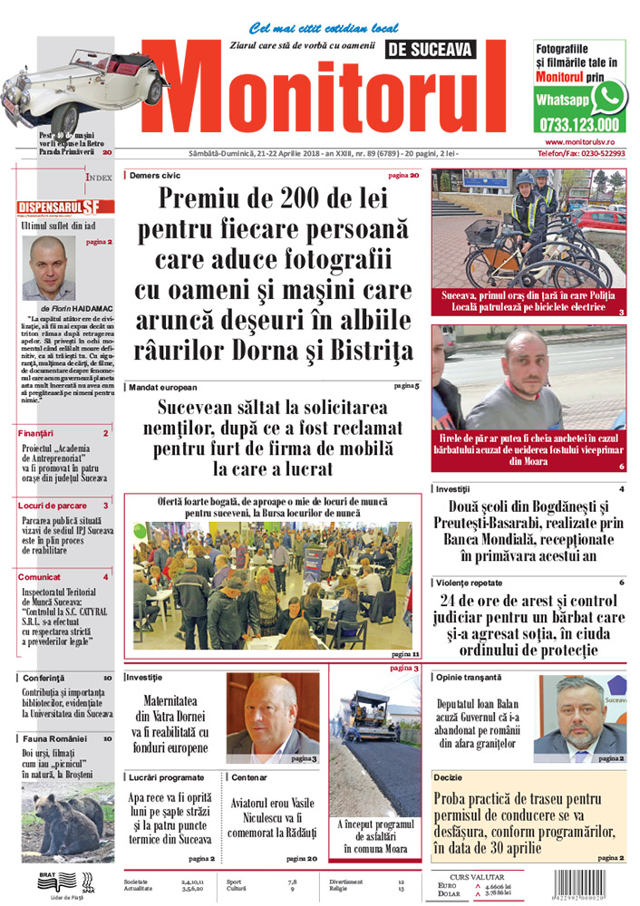 | Premiu de 200 de lei pentru fiecare persoană care aduce fotografii cu oameni şi maşini care aruncă deșeuri în albiile râurilor Dorna și Bistrița |