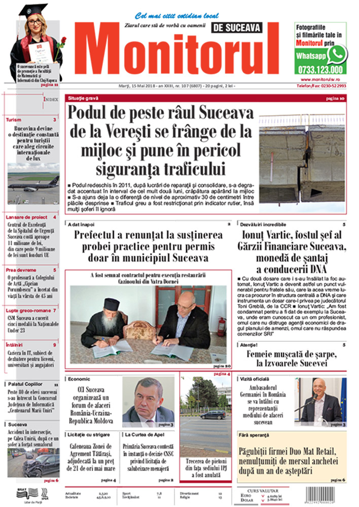 | Podul de peste râul Suceava de la Vereşti se frânge de la mijloc şi pune în pericol siguranţa traficului |