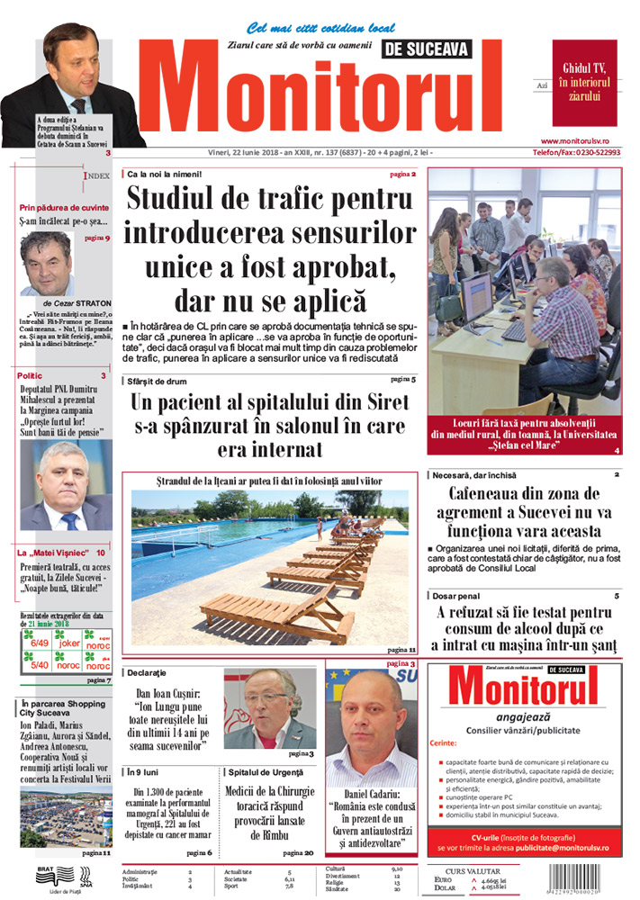 Un pacient al spitalului din Siret s-a spânzurat în salonul în care era internatBalul Bobocilor de la Colegiul Naţional “Mihai Eminescu”