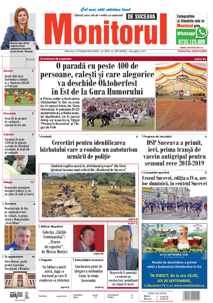 | O paradă cu peste 400 de persoane, caleşti şi care alegorice va deschide Oktoberfest în Est de la Gura Humorului |