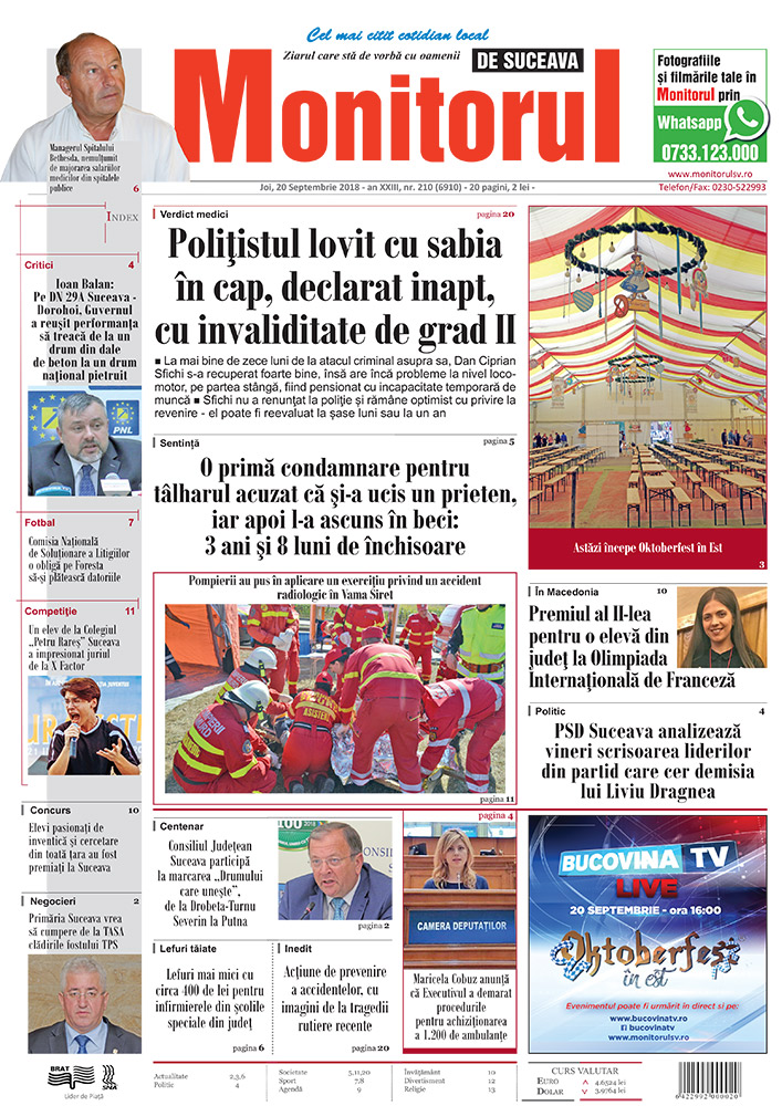 | Poliţistul lovit cu sabia în cap, declarat inapt, cu invaliditate de grad II |