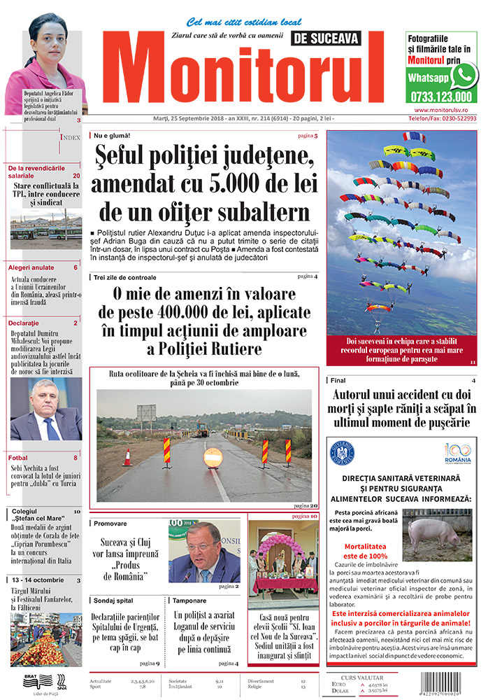 | Șeful poliţiei judeţene, amendat cu 5.000 de lei de un ofiţer subaltern |