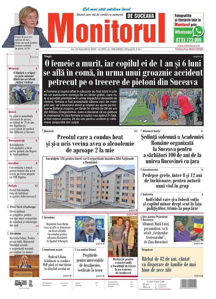 | O femeie a murit, iar copilul ei de 1 an şi 6 luni se află în comă, în urma unui groaznic accident petrecut pe o trecere de pietoni din Suceava |