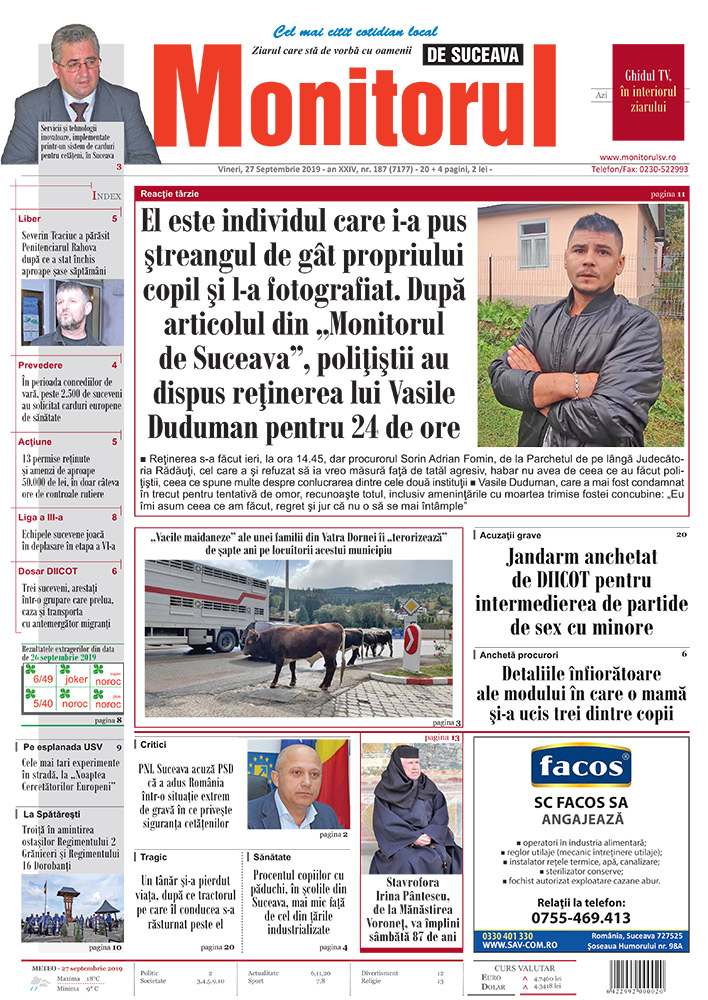 | El este individul care i-a pus ştreangul de gât propriului copil şi l-a fotografiat. După articolul din „Monitorul de Suceava”, poliţiştii au dispus reţinerea lui Vasile Duduman pentru 24 de ore |