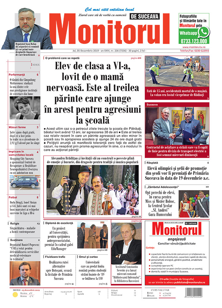 Elevii olimpici și șefii de promoție din școli vor fi premiați de Primăria Suceava în data de 19 decembrie a.c.