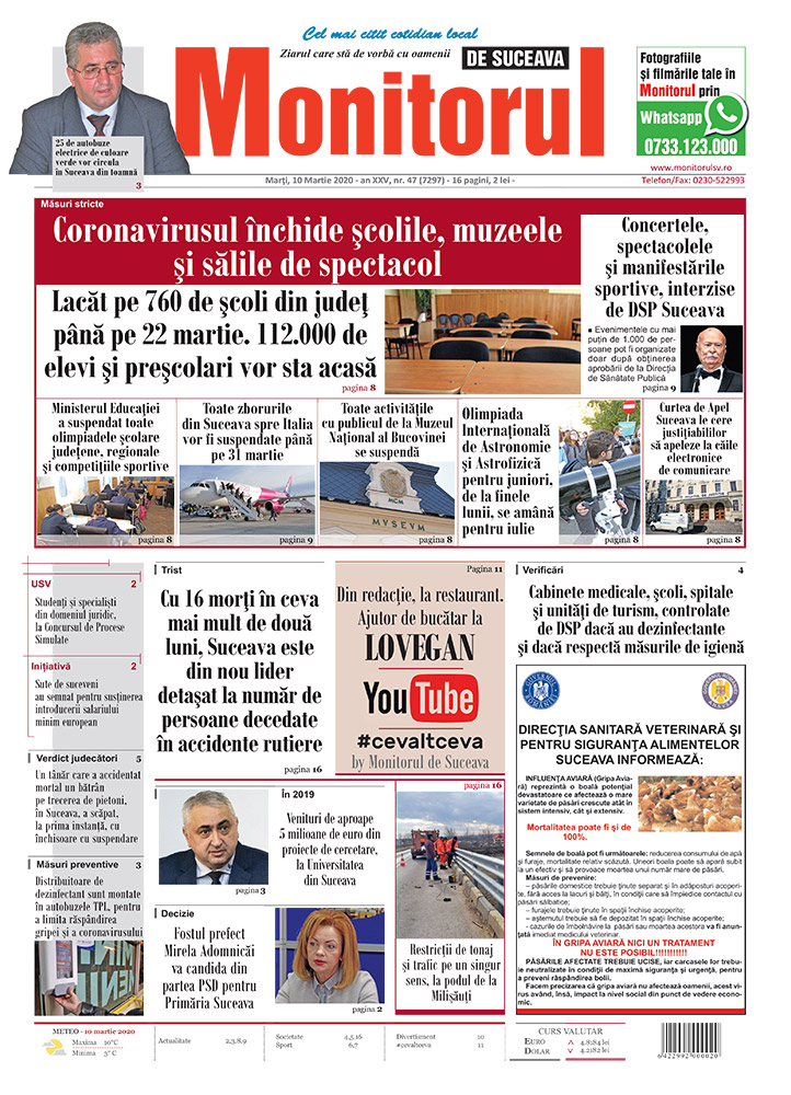 | Lacăt pe 760 de școli din județ până pe 22 martie. 112.000 de elevi și preșcolari vor sta acasă |
