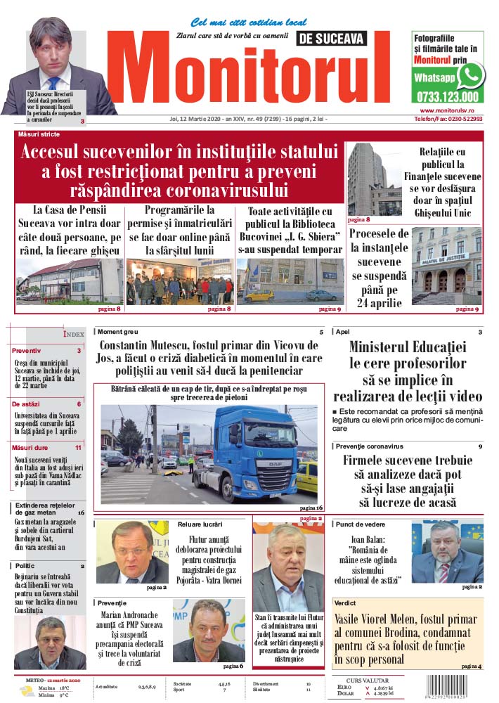 | Accesul sucevenilor în instituțiile statului a fost restricționat pentru a preveni răspândirea coronavirusului |