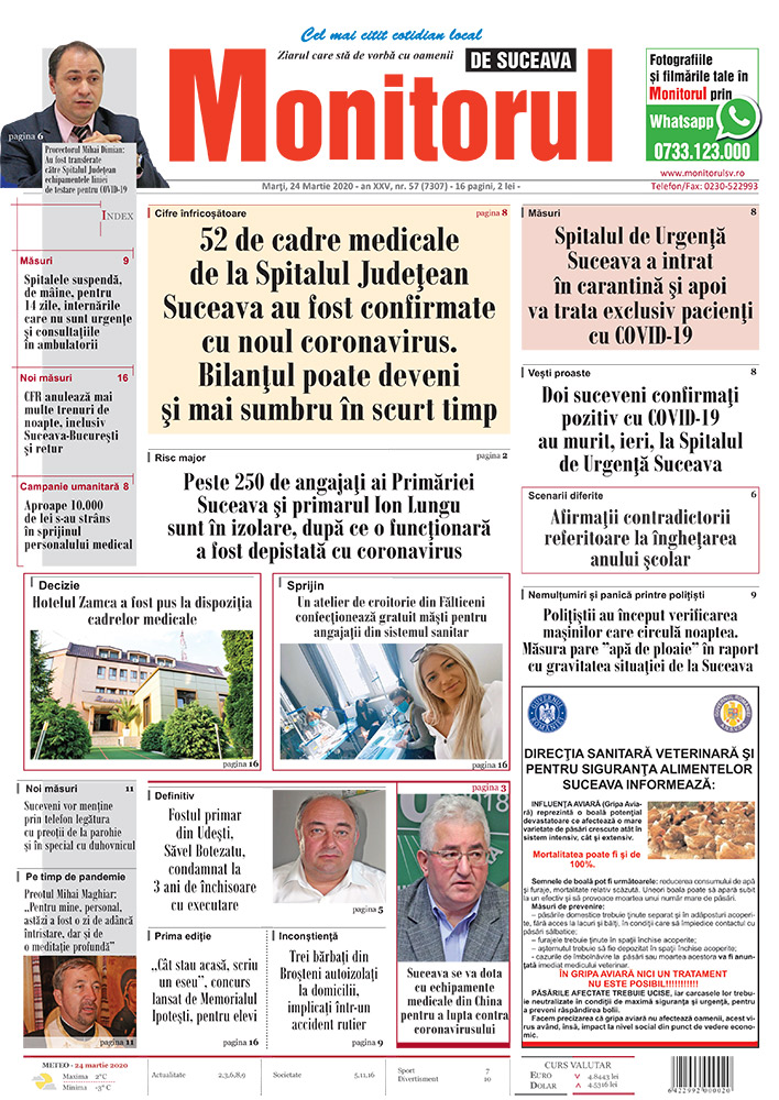 | 52 de cadre medicale de la Spitalul Județean Suceava au fost confirmate cu noul coronavirus. Bilanțul poate deveni și mai sumbru în scurt timp |