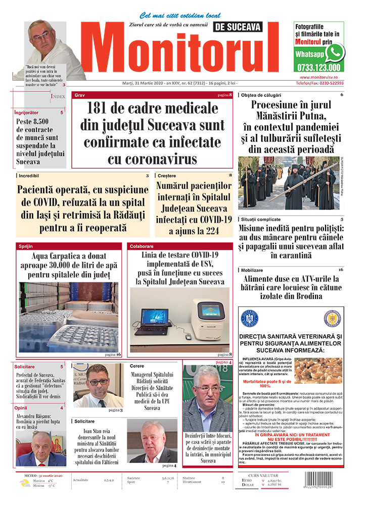 | 181 de cadre medicale din județul Suceava sunt confirmate ca infectate cu coronavirus |