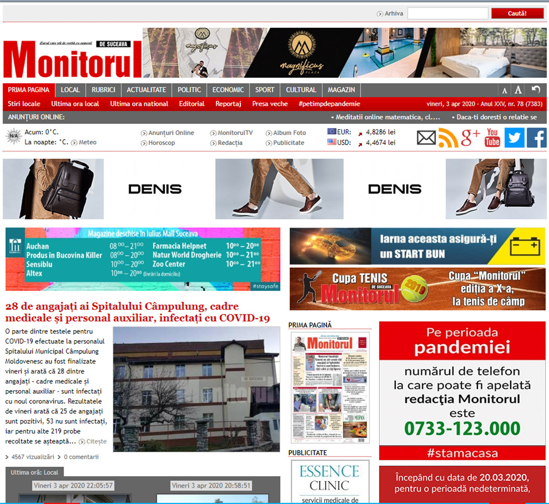 | Suceava se apropie de o mie de cazuri confirmate, în condițiile în care România a depășit trei mii de infectați confirmați |