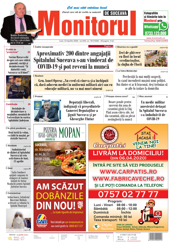 | 70 de suceveni s-au vindecat de noul coronavirus, iar alţi 365 de bolnavi au fost externaţi |