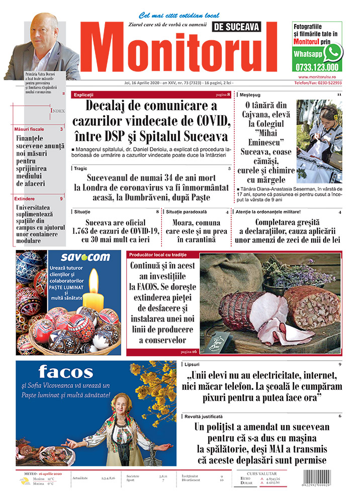 | Suceava are oficial 1.763 de cazuri de COVID-19, cu 30 mai mult ca ieri |