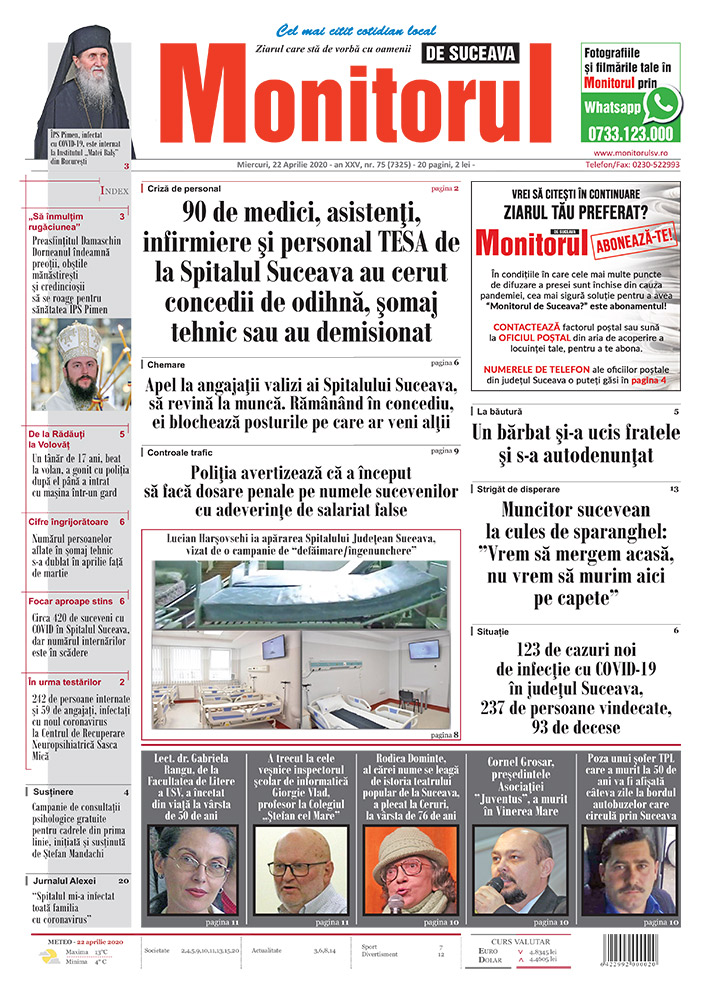 | Apel la angajații valizi ai Spitalului Suceava, să revină la muncă. Rămânând în concediu, ei blochează posturile pe care ar veni alții |