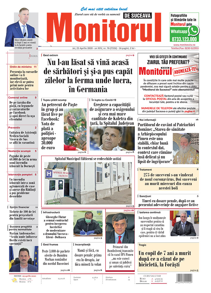 | Ion Lungu le mulțumește sucevenilor pentru că au respectat carantina și îi roagă să stea în case, pentru că vârful epidemiei nu a fost atins |