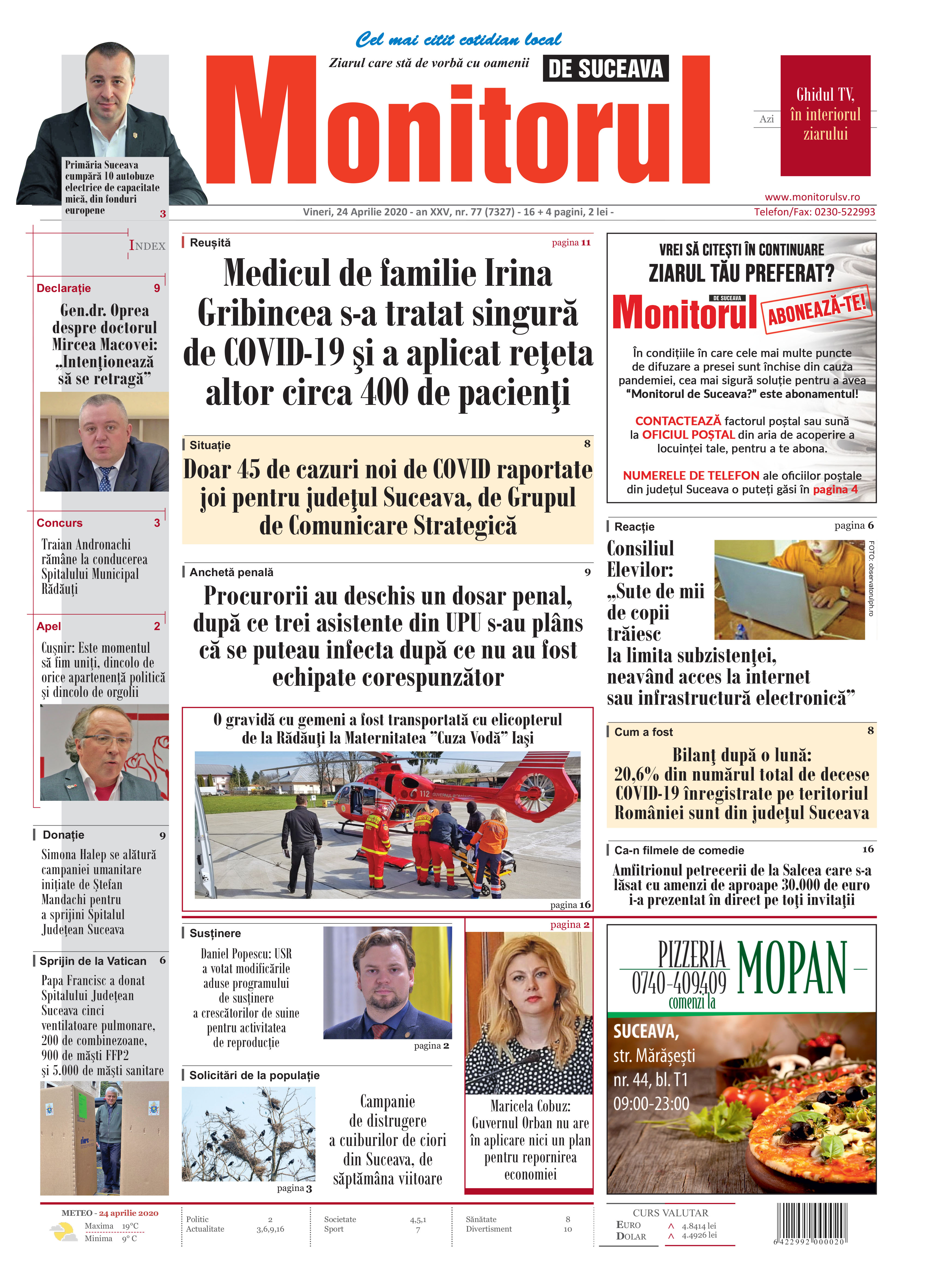 | Doar 45 de cazuri noi de COVID raportate joi pentru județul Suceava, de Grupul de Comunicare Strategică |