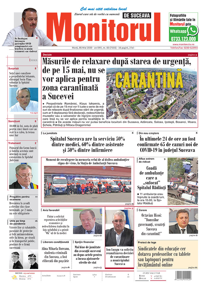 | Octavian Ilisoi: ”Domnilor guvernanți, scoateți Suceava din carantină!” |
