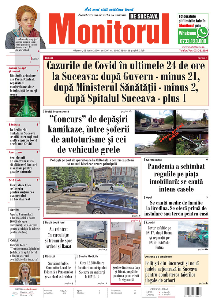 | Cazurile de Covid în ultimele 24 de ore la Suceava: după Guvern – minus 21, după Ministerul Sănătății - minus 2, după Spitalul Suceava – plus 1 |