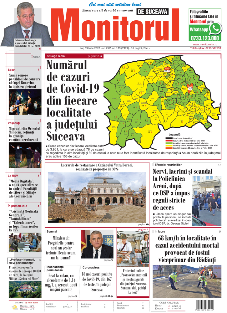 | Numărul de cazuri de Covid-19 din fiecare localitate a județului Suceava |