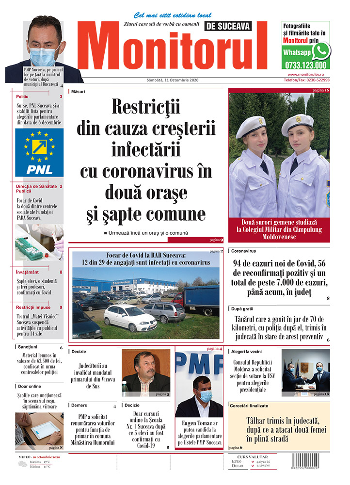 | Restricții din cauza creșterii infectării cu coronavirus în două orașe și şapte comune |