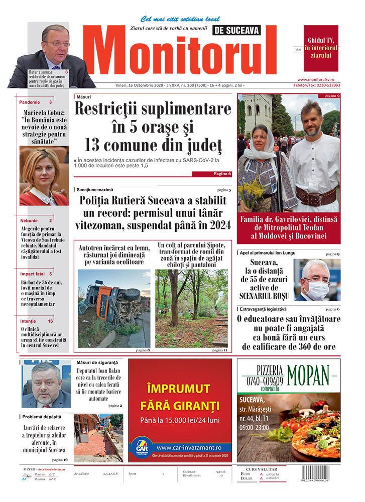 | Suceava, la o distanță de 55 de cazuri active de SCENARIUL ROȘU |