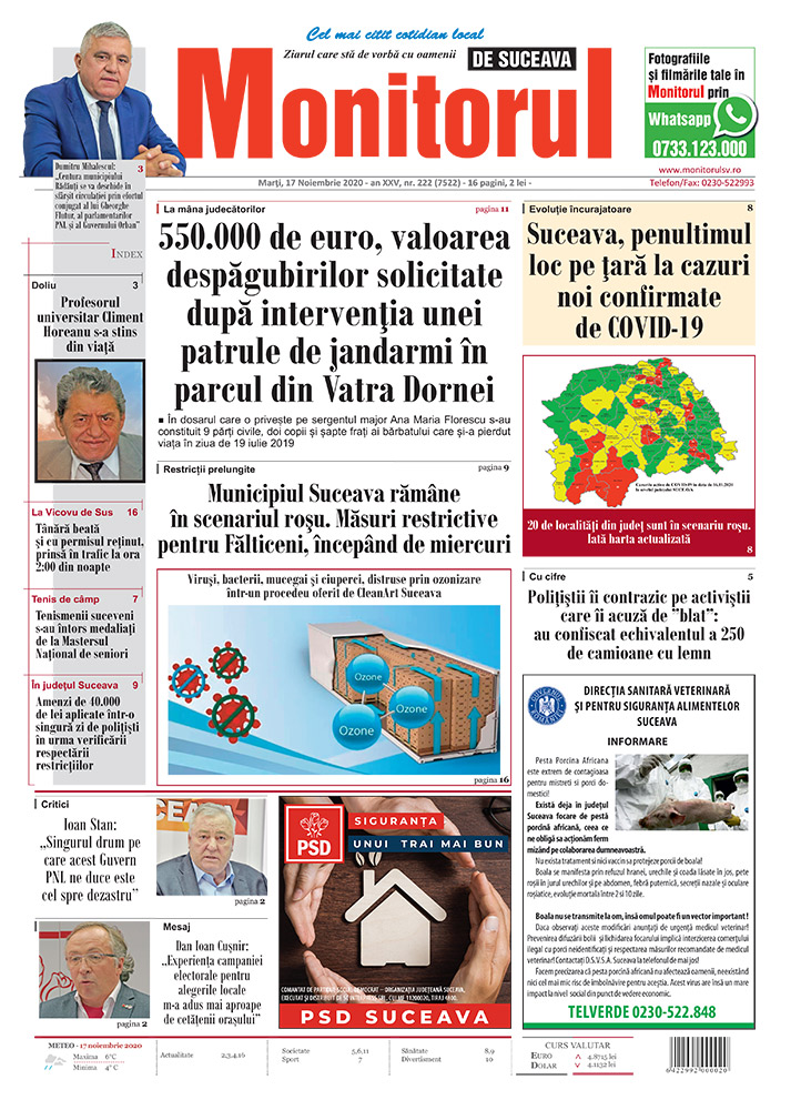 | Municipiul Suceava rămâne în scenariul roșu. Măsuri restrictive pentru Fălticeni, începând de miercuri |