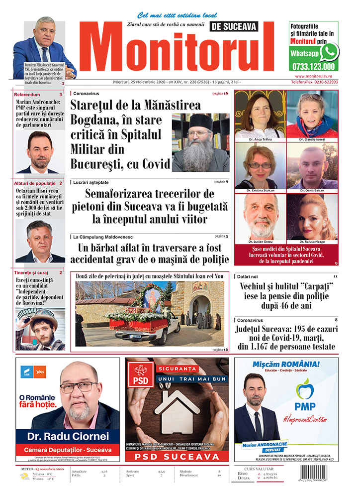 | Județul Suceava: 195 de cazuri noi de Covid-19, marți, din 1.167 de persoane testate |