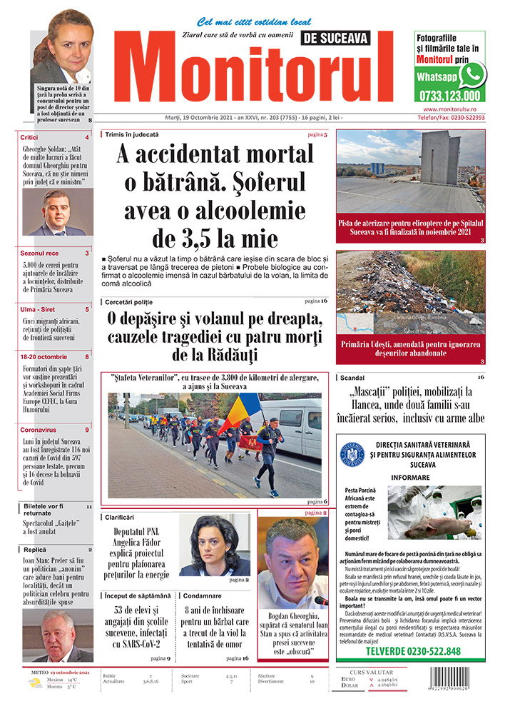 | Luni în județul Suceava au fost înregistrate 116 noi cazuri de Covid din 597 persoane testate, precum și 16 decese la bolnavii de Covid |