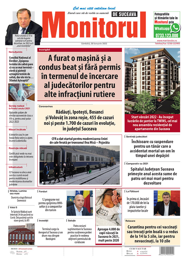 | Rădăuți, Ipotești, Bosanci și Volovăț în zona roșie, 455 de cazuri noi și peste 1.700 de cazuri în evoluție, în județul Suceava |