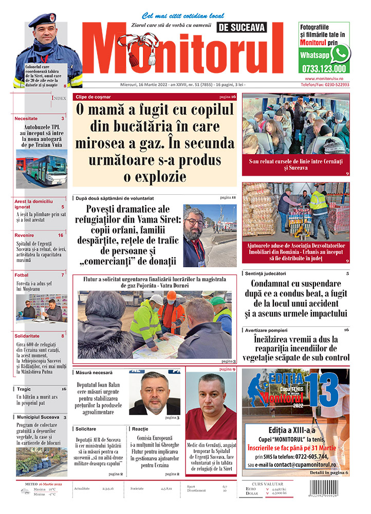 | Circa 600 de refugiați din Ucraina sunt cazați, la acest moment, la Arhiepiscopia Sucevei și Rădăuților, cei mai mulți la Mănăstirea Putna |