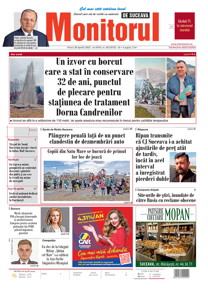 Flutur: Județul Suceava va beneficia de aproape 200 de milioane de euro pentru construcția de rețele de gaz în peste 30 de localitățiBalul Bobocilor de la Colegiul Naţional „Petru Rareş”