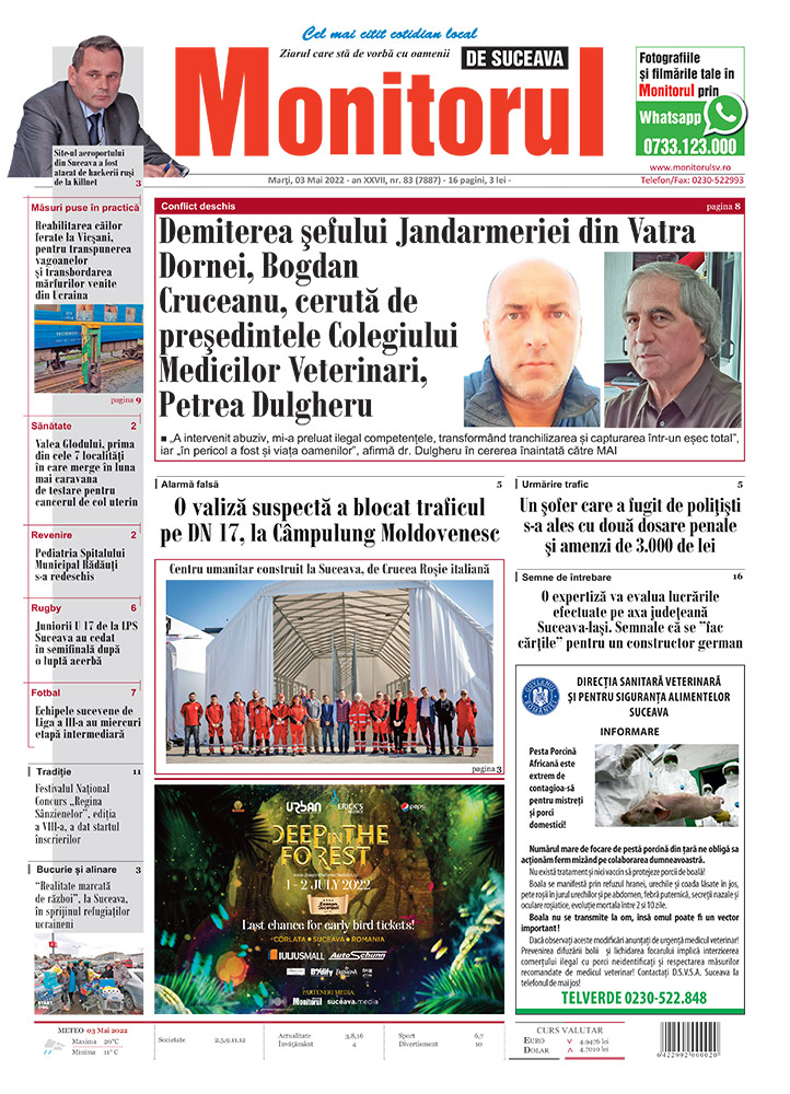 FOTODemiterea șefului Jandarmeriei din Vatra Dornei, Bogdan Cruceanu, cerută de președintele Colegiului Medicilor Veterinari, Petrea Dulgheru