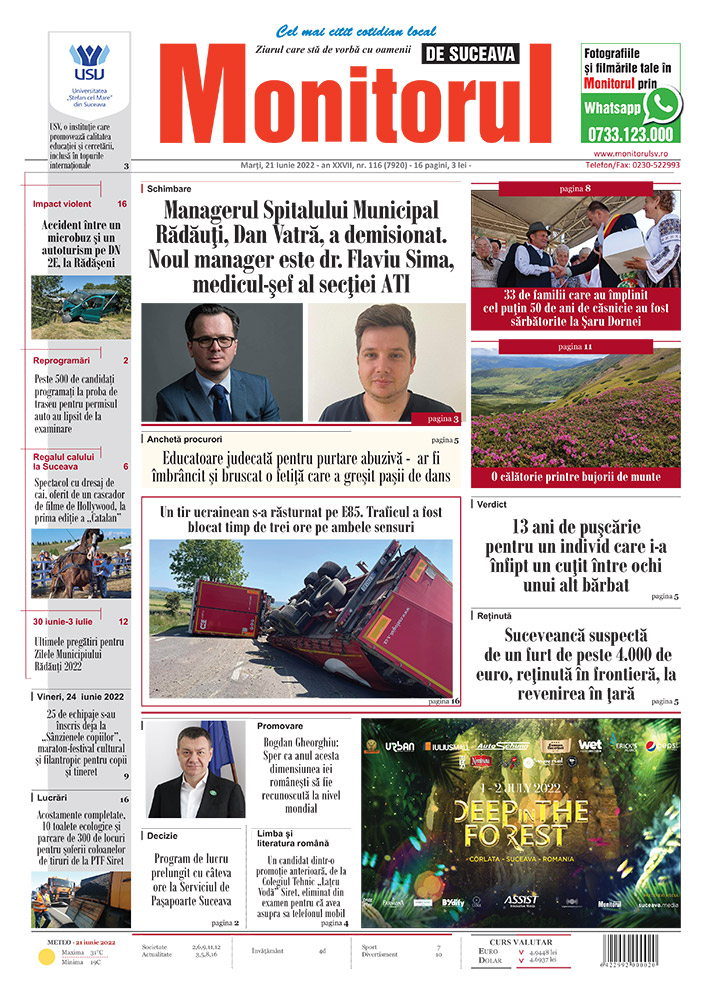 | Managerul Spitalului Municipal Rădăuți, Dan Vatră, a demisionat. Noul manager este dr. Flaviu Sima, medicul-șef al secției ATI |