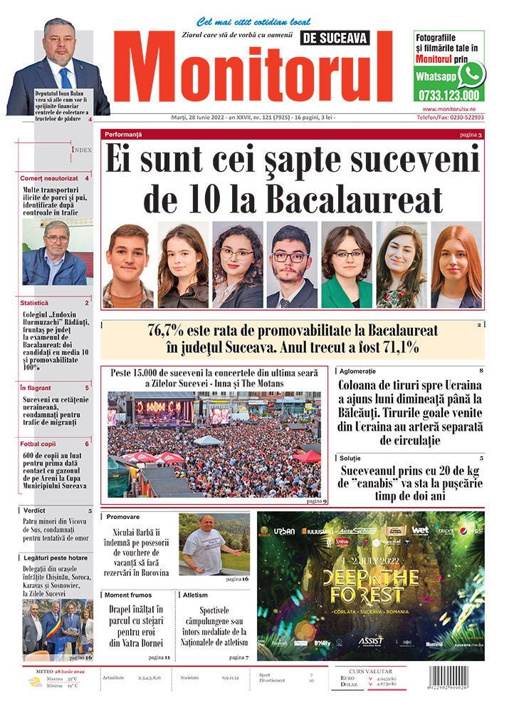 | 76,7% este rata de promovabilitate la Bacalaureat în județul Suceava. Anul trecut a fost 71,1% |
