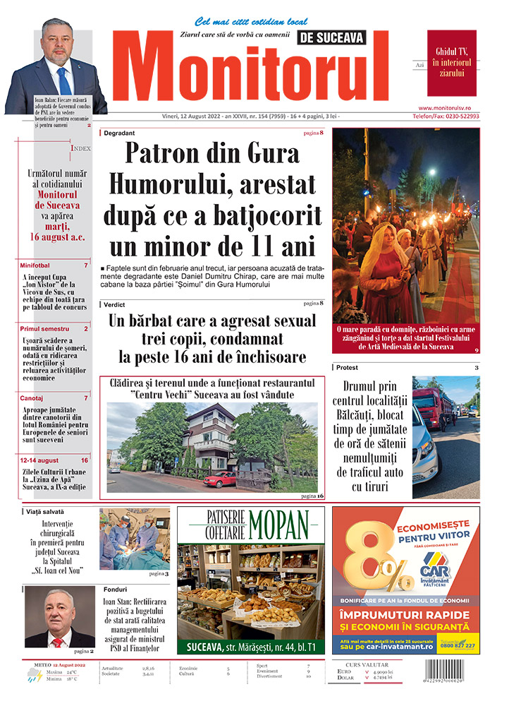 FOTOPatron din Gura Humorului, arestat după ce a batjocorit un minor de 11 aniBalul Bobocilor de la Colegiul Naţional “Mihai Eminescu”