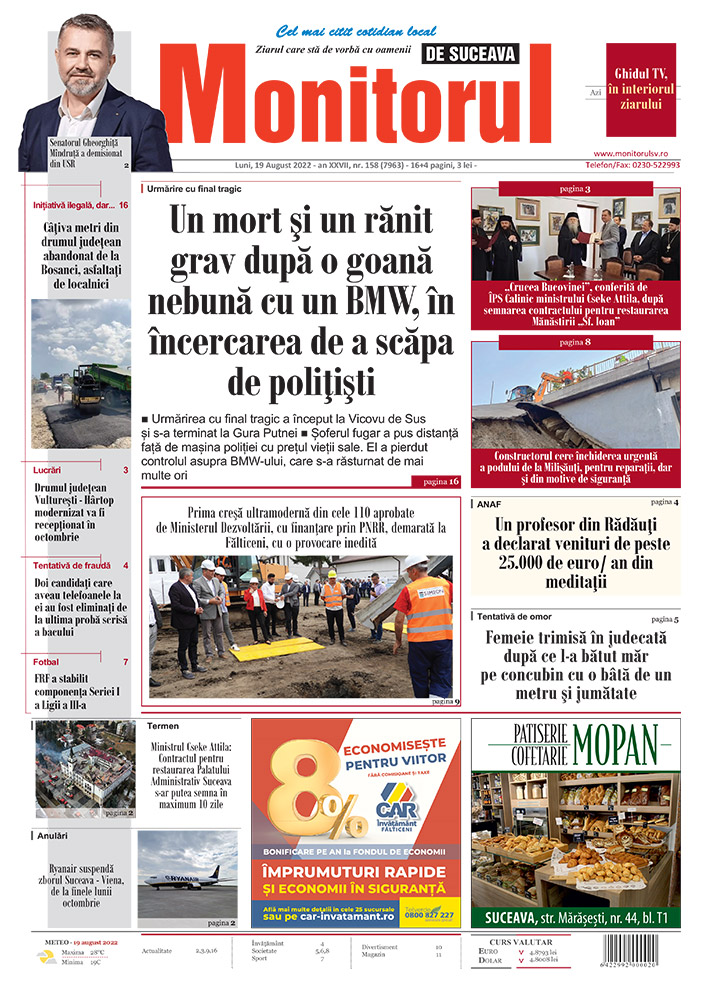 FOTOConstructorul cere închiderea urgentă a podului de la Milișăuți, pentru reparații, dar și din motive de siguranțăBalul Bobocilor de la Colegiul Naţional ”Ştefan cel Mare”
