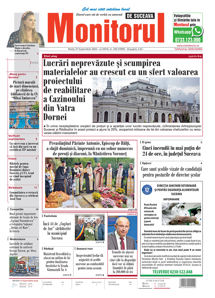 | Lucrări neprevăzute și scumpirea materialelor au crescut cu un sfert valoarea proiectului de reabilitare a Cazinoului din Vatra Dornei |