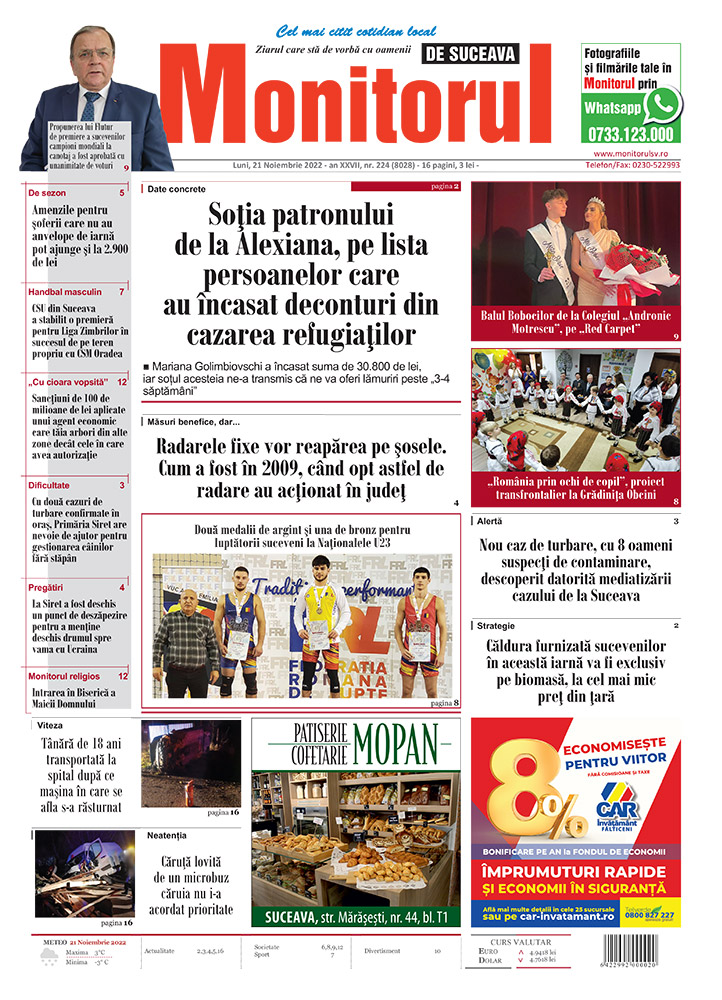Sancțiuni de 100 de milioane de lei aplicate unui agent economic care tăia arbori din alte zone decât cele în care avea autorizațieBalul Bobocilor de la Colegiul de Artă „Ciprian Porumbescu”
