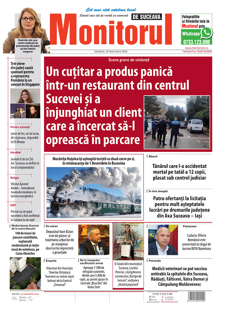 | Un cuțitar a produs panică într-un restaurant din centrul Sucevei și a înjunghiat un client care a încercat să-l oprească în parcare |