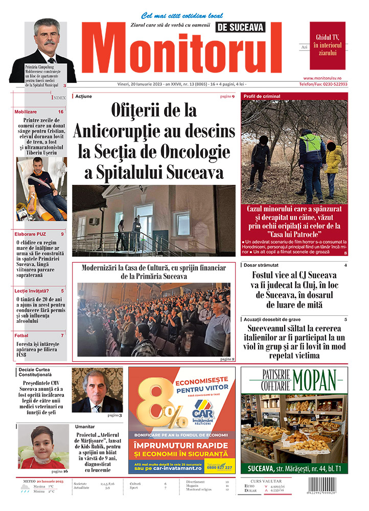 | Modernizări la Casa de Cultură, cu sprijin financiar de la Primăria Suceava |