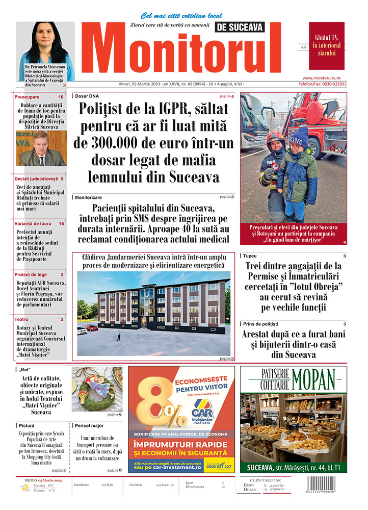 | Polițist de la IGPR, săltat pentru că ar fi luat mită de 300.000 de euro într-un dosar legat de mafia lemnului din Suceava |