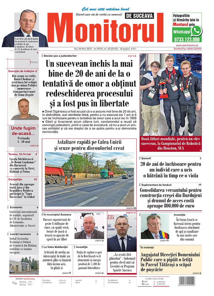 Un sucevean închis la mai bine de 20 de ani de la o tentativă de omor a obținut redeschiderea procesului și a fost pus în libertateBalul Bobocilor de la Colegiul de Informatică ”Spiru Haret”