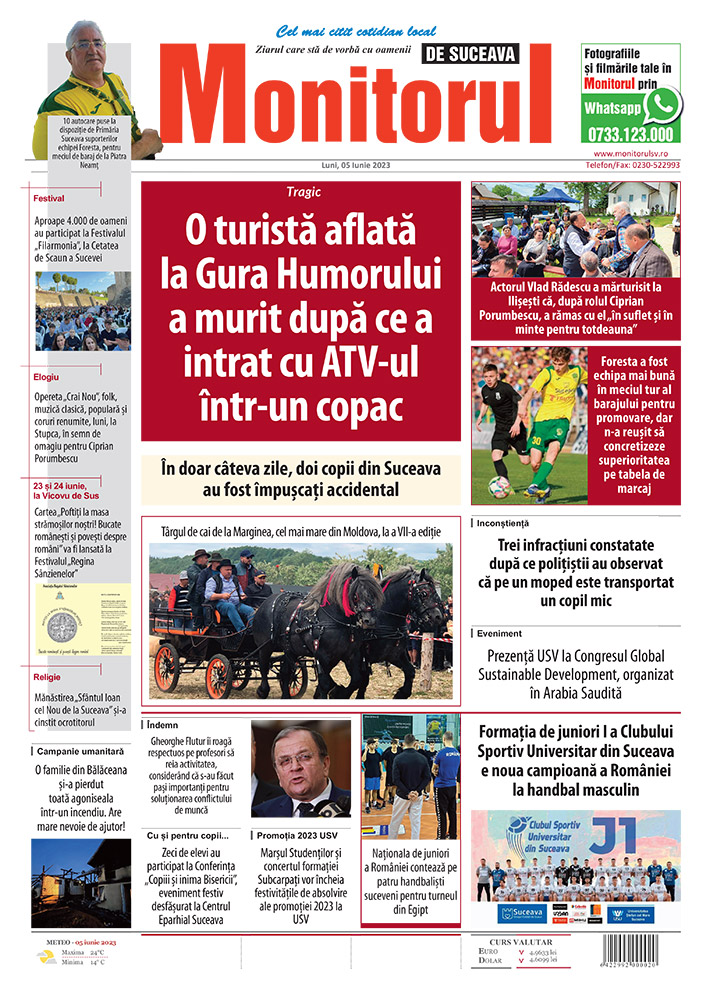 O turistă aflată la Gura Humorului a murit după ce a intrat cu ATV-ul într-un copacBalul Bobocilor de la Colegiul Naţional ”Ştefan cel Mare”