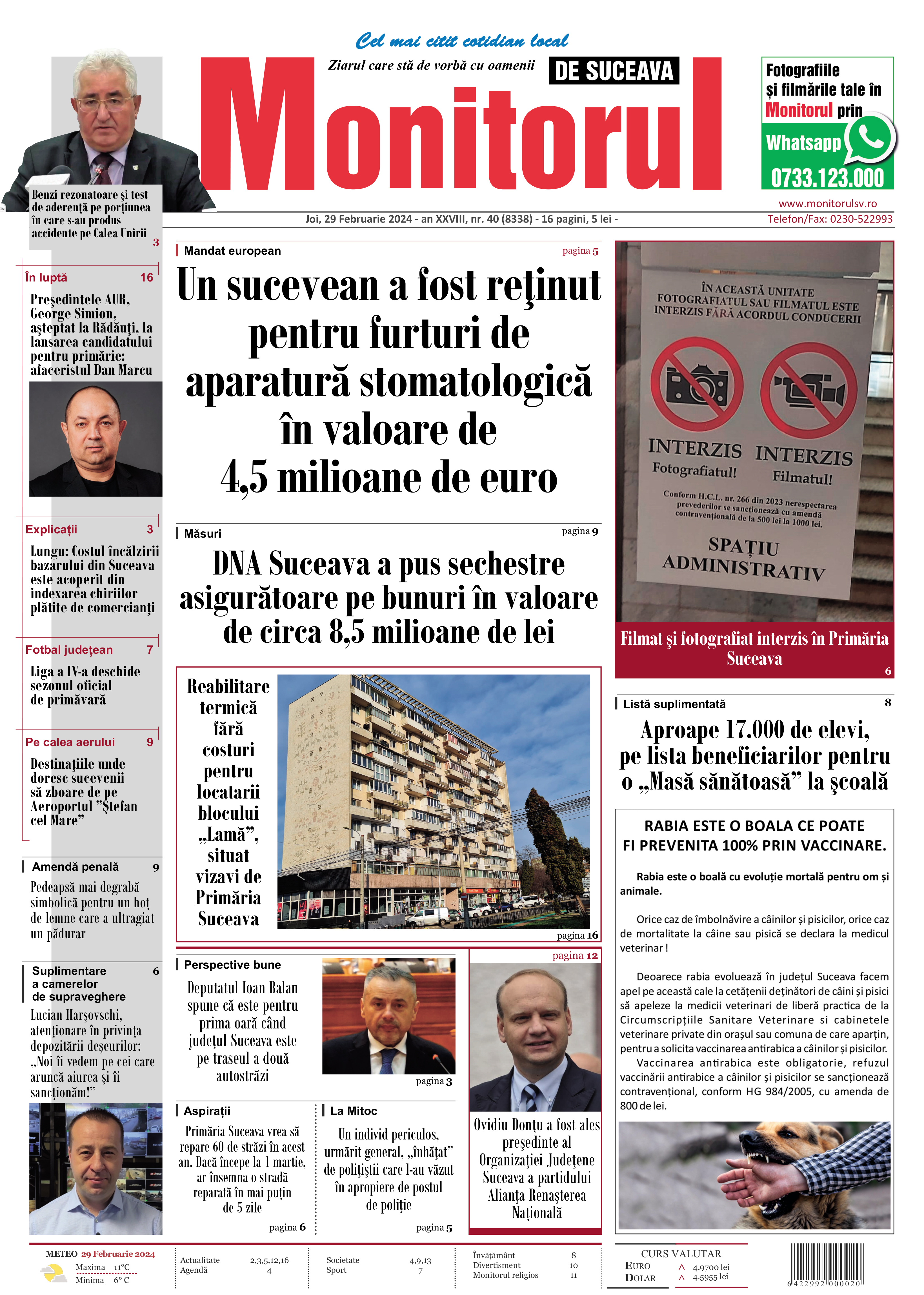 | Un sucevean a fost reținut pentru furturi de aparatură stomatologică în valoare de 4,5 milioane de euro |