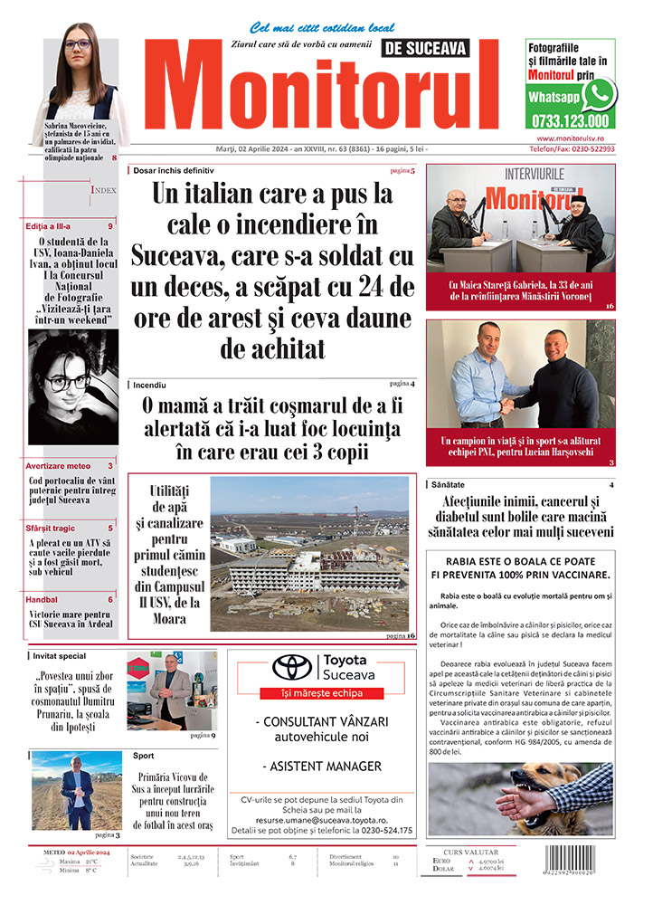 Un italian care a pus la cale o incendiere în Suceava, care s-a soldat cu un deces, a scăpat cu 24 de ore de arest și ceva daune de achitatBalul Bobocilor de la Colegiul de Informatică ”Spiru Haret”