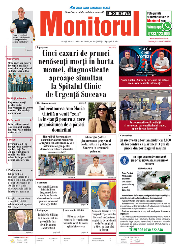 | Cinci cazuri de prunci nenăscuți morți în burta mamei, diagnosticate aproape simultan la Spitalul Clinic de Urgență Suceava |