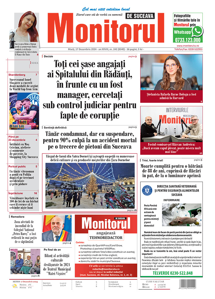 Tânărul grav rănit în explozia de luni, din Burdujeni-Sat va fi transferat astăzi la TimișoaraBalul Bobocilor de la Colegiul Naţional ”Ştefan cel Mare”