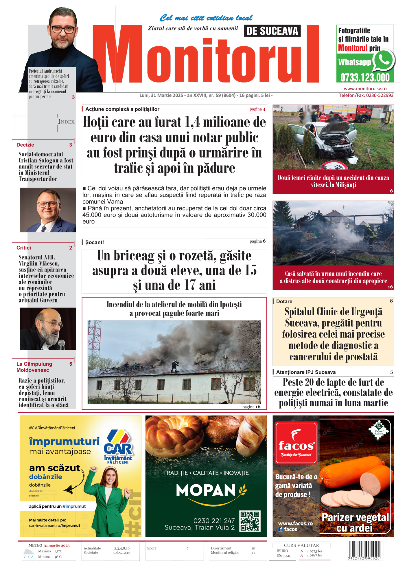 FOTOHoții care au furat 1,4 milioane de euro din casa unui notar public au fost prinși după o urmărire în trafic și apoi în pădureBalul Bobocilor de la Colegiul de Artă „Ciprian Porumbescu”